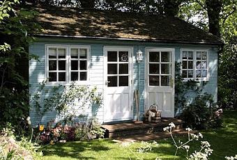 La casa es minima y con interesantes interiores, toda la cabaña esta pintada en colores celestes y blancos, con mobiliario muy sencillo.