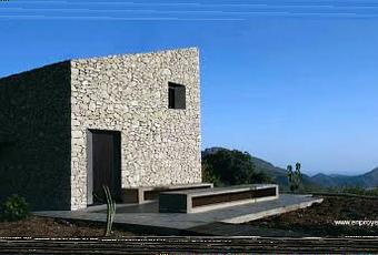 Esta es una pequeña casa retirada hecha a partir de la idea de una cabaña de piedra pero con la concepción de diseño actual