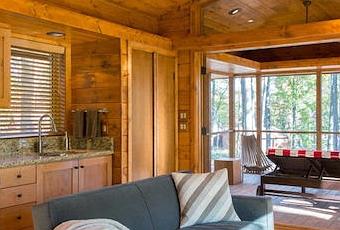 La cabana es pequena casa ubicable en cualquier terreno. Internamente tiene todo lo necesario para la vida diaria, con espacios minimos pero muy funcionales.