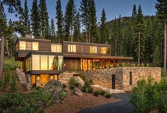 Cabana de madera de diseno muy moderno en las montanas de Truckee, California, USA.