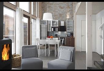 Esta es una cabaña actual, construida exteriormente en madera, ubicada en el centro Sur de Finlandia, en Himos.