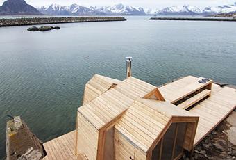 En un pequeño pueblo llamado Kleivan, en las islas Lofoten, Noruega se encuentra esta pequeña construcción de madera de diversos usos.