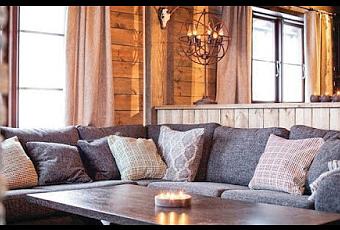 La cabaña esta construida en madera y piedra, muy oscura en el exterior, y con decoracion muy importante en el interior.
