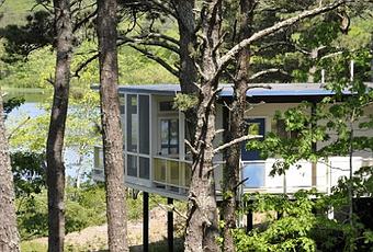 La vivienda , de diseño rustico y moderno, es construida sobre pilotes y en medio de un bosque tupido, se haya muy cercana a las mejores playas de Nueva Inglaterra,