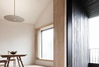 Lo que se conserva de su morfologia es especialmente el techo a 2 aguas, porche y fachada de madera oscura, pero con un concepto muy actual.