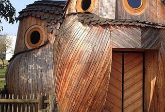 The Watchers fue diseñado y construido por Zebra3, una compañía local de producción de arte contemporáneo. El diseño se inspiró en los pequeños búhos que anidan en el suelo del pantano circundante, usando tejas para unir sus cabezas emplumadas. Un grupo de tres búhos huecos de madera en el extremo de una pasarela en Burdeos, Francia, conectados por dentro para formar una cabina de dos pisos...