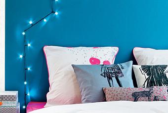 fuente dustjacket attic vía lalole en pinterestPintando una sutil línea que perfile un cabecero imaginario.