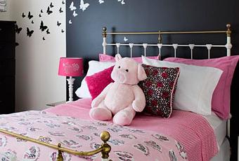 en este dormitorio juvenil se han empapelado los cabeceros de las camas con papel
