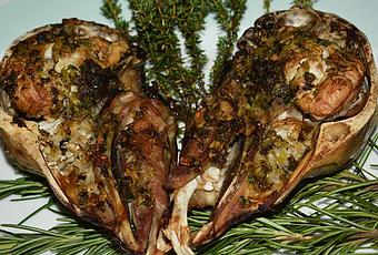 2 cabezas de cabrito abiertas por la mitad