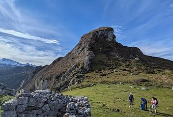 Durante este tramo vamos dejando a nuestra derecha la extensa pradería de la Veguina Gustoméu, donde aún se conservan restos dispersos de antiguas cabañas ya en ruinas. El sendero se mantiene claro y bien marcado