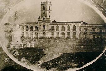 Aguzando la vista, podemos ver un grupo de personas frente al edificio. Son los soldados correntinos dispuestos a entrar en batalla en la Revolución del 11 de septiembre que terminará con la separación de Buenos Aires de la Confederación.