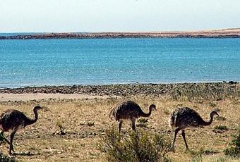 Cabo Dos Bahías es considerado la zona más bella dentro del sistema de áreas Protegidas costeras por el contraste paisajístico de sus piedras rojizas y el mar azul.