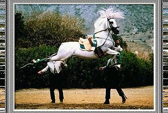“…Para hacer el caballo una perfecta cabriola debe levantarse igualmente de atrás que de adelante, esto es, que en lo alto del mismo saltose han de hallar iguales y á nivel la grupa con la cruz, y ha de situar el bruto, en esa posición, recta y asegurada la cabeza, doblados los brazos y sin avanzar más de un pie de terreno en cada cabriola…”
