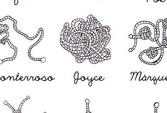 Escritores retratados en forma de nudo según su forma de plantear la narración. O más bien, nudos que retratan a escritores.