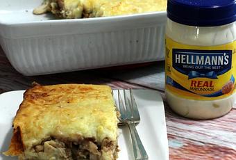 Combina la 1/2 taza restante de mayonesa con el puré de papa y el queso en un tazón grande. Vierte sobre el pavo y luego pónnle el restante de relleno.