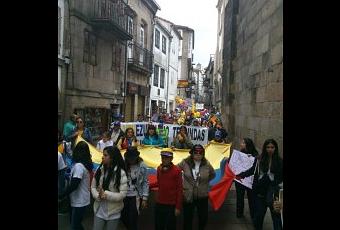 Esta organización, que representa de forma oficial la Comunidad gallega y Asturias al líder de la oposición venezolana, Henrique Capriles, ha realizado una marcha reivindicativa por las calles compostelanas bajo el lema 'Venezuela no te rindas. Galicia está contigo'.