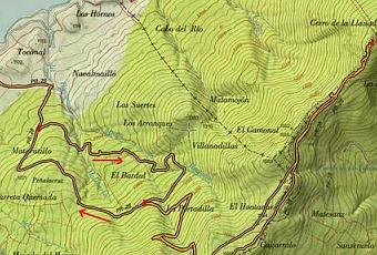 Observaciones y recomendaciones: Ruta que no presenta dificultades técnicas, salvo el desnivel a salvar y la distancia a recorrer, que requieren de cierta capacidad física. La marcha discurre hasta las cercanías del cordal por pistas forestales, para continuar por senderos de montaña y trochas de vacas con traza definida hasta la cumbre; la posibilidad de ganado en todo el recorrido nos hará evitar molestarlos y salirnos de los caminos si fuese necesario. Hay una fuente abrevadero en el Collado del Portachuelo y otra como un kilómetro más al NE y en la ladera E pasado el Collado camino de la Cachiporrilla. Evitar los días de niebla por perdernos la perspectiva del paisaje; las mejores épocas para realizar esta ruta serán la primavera y otoño.