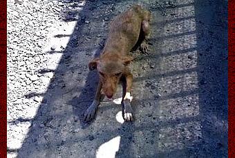 Una chica se ha encontrado a este perrito abandonado, está en los huesos y herido (probablemente por un atropello), se ve que es un cachorro, por las fotos parece que de raza podenco.