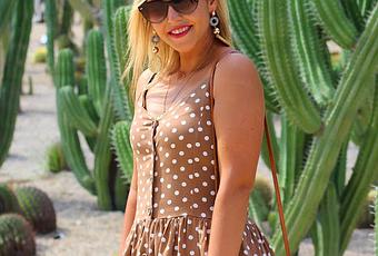 ¿Qué os parece el look de hoy? Gracias por vuestras visitas y comentarios. Nos vemos el jueves con un nuevo post. Feliz semana!Good night! How did the weekend go? I hope it was great. During this weekend, we have rested and we did some things that we don't have time to do during the week.Today I show you the first outfit after the holidays. One of the trends of this summer was the buttoned dresses and this season continues being a trend. In the outfit of the day, I wear a brown midi polka dots dress that I bought this summer in a street market. I wear it with pink sandals and my round rafia bag that I bought in Bali. A perfect outfit to wear in the last days of September until the cold doesn't come.