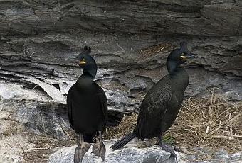 Ayer hicimos una visita al occidente de Asturies para ver como transcurría la reproducción de los cormoranes moñudos y hacernos una idea de cuando tendríamos que comenzar el trabajo de campo. Como suele ocurrir siempre llama la atención la gran diferencia entre las distintas parejas, mientras que algunas ya tenían pollos, otras aun no habían realizado la puesta. En la colonia de Gavioteiro, Gilberto Jardón ya ha visto una pareja con pollos grandes hace una semana mientras que las demás estaban mucho mas retrasadas.