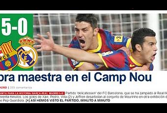 Pido perdón a aquellos visitantes de mi blog a los que no les gusta el fútbol, pero creo que esta noche tengo que dedicarle una entradita al REPASO y al BAÑO que le ha pegado el Barça a un triste e impotente Real Madrid, más pendiente de pegar patadas y jugar sucio que de jugar al fútbol... Pero tranquilos, que más que breve, voy a ser muy gráfico: 5-0, y cada uno en su sitio...