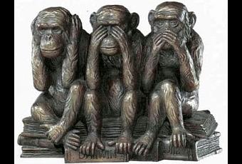 Observando las actitudes de los herederos históricos del régimen anterior ante casi todo, me recuerdan a los monos que ni escuchaban, ni hablaban, ni veían. Si observamos a la alcaldesa de Quijorna y su demo nacional-fascista, a la Alcaldesa de Cádiz cuando se abanica mirando los "frescos" del techo mientras los ciudadanos intervienen,......., eso como los monos.