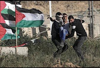Varios manifestantes palestinos retiran a un joven. herido en la frontera entre Israel y Gaza.Así lo escribe