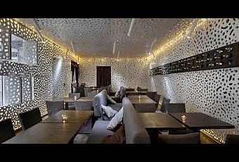 Porque a veces un buen elemento puede ser el éxito o fracaso de un diseño. En el caso de esta cafetería diseñada en Drozdov&Partners. El lugar juega con la misma trama troquelada en diferentes materiales, en la terraza se utiliza para diferenciar espacios y jugar con sombras y en interior para crear un ambiente que juega con la luz. Con ello lo que quiero haceros llegar es que, a veces, algo así de característico puede llegar a darnos la singularidad en nuestro proyecto y se puede hacer algo similar de manera económica. Vía: plataforma arquitectura