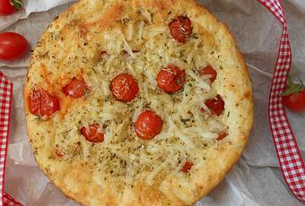 Colocar la mezcla en el molde y agregar la cebolla dorada, los tomates y la mozzarella. Por último condimentamos con orégano y romero.
