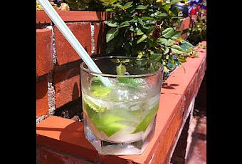 Cortar media lima en 4 gajos, ponerlos en el vaso en el que se va a servir con el azúcar y machacar para extraer el zumo con lo primero que tengamos a mano, por ejemplo un mortero. Añadir la cachaça, (sin sacar la lima del vaso), llenar el vaso con hielo picado y remover para que el azúcar no se quede abajo. Lo que le da un toque insuperable son las dos hojitas de menta!! En serio!! Para morirseee!! Podemos usar la otra mitad de la lima para decorar, pero yo la usé para la segunda Caipirinha que me tomé...