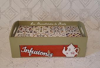 Esta caja-bandeja la vi en una feria y supe que se la haría, era muy de su estilo.