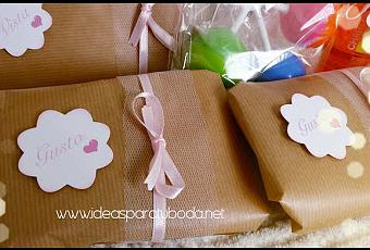 Para las etiquetas utilicé la forma de una flor y entinté los bordes en color rosa para que fuera todo a juego.