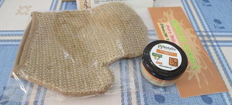 Se trata de un guante, que tiene un tacto muy agradable, y que es ideal para la ducha y el baño, con el fín de exfoliar suavemente tu cuerpo dejándolo limpio y con un tacto muy suave, sin necesidad de aplicar aceite o loción hidratante corporal luego... Lo he probado una vez, sólo, y la verdad, es que elimina muy bien las pieles muertas y reactiva la circulación de la piel. Su precio es de 4,45€.
