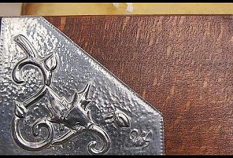 Fijamos el dibujo de muestra con cinta adhesiva en la lámina para grabar. Ponemos la lámina sobre la plancha de caucho celular y reseguimos la muestra con un bolígrafo. Presionamos suavemente y, con la ayuda de una herramienta de bola, trabajamos las líneas en relieve.