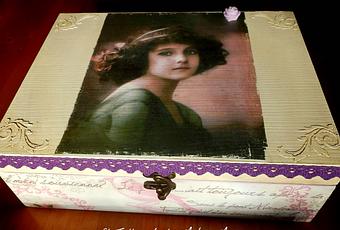Por fin he vuelto!!!! Siiii ya se que ha pasado mucho tiempo desde que no publico pero es que entre las navidades y su locura, los encargos que me hicieron y que se me estropeó el ordenador y he tenido que comprar otro no había manera de hacerlo. Pero bueno por fin se ha solucionado todo y espero volver a publicar a menudo ya que tengo bastantes cositas para enseñaros. Voy a empezar por enseñaros unas cajas joyeros de madera que me encargaron estas navidades. Todos eran para regalar y todos están personalizados con los nombres de sus futuras propietarias. Espero que os gusten. Las tres primeras eran para unas encantadoras abuelitas, todas de la misma familia por lo que decidí que fueran iguales pero diferentes. Elegí unas preciosas fotos de niñas vintage y las transferí en la parte superior. Pinté con el blanco antiguo de Mary Paint y en las esquinas coloqué unos motivos con stencil en relieve. La parte inferior de estas tres es decoupage con servilleta.