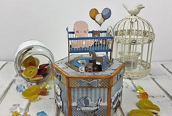 Hoy he alterado una cajita de cartón que nos servirá para guardar los recuerdos de nuestros bebés. Para ello he usado la preciosa colección Vintage Baby Boy.
