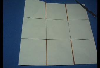 Recorta un cuadrado de 21cm y dividelo en tres o sea cuadrados de 7cm.