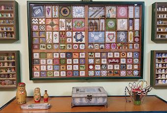 En la zona superior izquierda la mayoría de los bloques están dedicados al patchwork. También hay maquinas de coser y alguna pieza bordada.