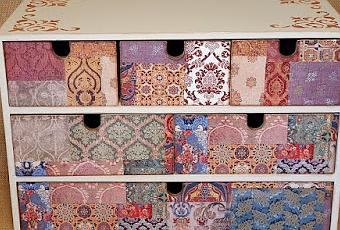Al frontal de los cajones le puse el papel de arroz y luego también dos manos de barniz al agua mate.