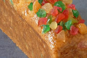 Vertemos en el molde un poco de masa y por encima ponemos un poco de fruta confitada esparcida, ponemos otro poco de masa y más fruta. Así igual en el otro molde.