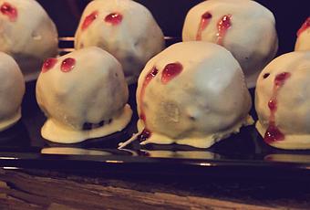 El año pasado celebramos Halloween de una forma mucho menos terrorífico. La temática escogida fueron los vampiros. Uno de los postres que más triunfó fueron estas Trufas de bizocho red velvet con mordida de vampiro. Un postre divertido y buenísimo!