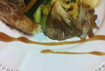 En otra sartén, simultáneamente, se hacen las setas a la plancha. Se reservan.
