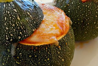 Hace mucho tiempo, en mis comienzos con el blog, supe de este tipo de calabacín, pero la chica que me lo dio a conocer, era de otro país y claro, aquí de esta clase no los había, por lo menos yo no lo había visto nunca y me moría de las ganas por tener unos cuantos de estos para elaborar una de mis recetas, por su bonita y original presentación. Y ese día ya llegó... que alegría me dio cuando en el mercado fui a comprar verduras y me topé con él. La receta de la chica la guarde, pero no recuerdo que nombre le dio a su receta, así que desistí de hacerla como ella contaba que siempre los había preparado su abuela, y que estoy segura de lo rico que sería su tradicional forma de cocinarlos.