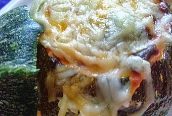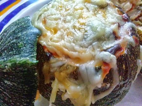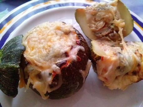 Una vez preparado el relleno, procedemos a rellenar los calabacines.Ponlos en una bandeja de horno, echa unas cucharadas de bechamel por encima y espolvorea el queso rallado.Introdúcelos en el horno a 180º, calor arriba y abajo, hasta que veamos que los calabacines están tiernos ( tienden a arrugarse ).