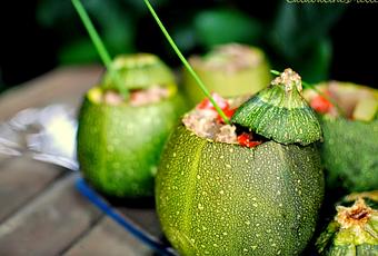 Hola a todos.... Aquí os traigo unos calabacines de forma redondeada (perecen unas calabazas en miniatura) llamados "calabacines luna", son muy vistosos y ricos, además preparados con un relleno de vegetales y carne picada de vacuno están maravillosos y sobre todo sanos!
