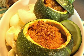 Pendiente de Diagnosticar es muy amante de los calabacines y tenía muchas ganas de hacerse con unos redondos (aunque más correctamente, deberíamos decir "esféricos") para rellenarlos.