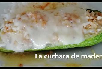 Cocinamos la bechamel según nos diga el fabricante y lo agregamos a la mezcla de atún, cebolla y aceitunas. Rellanamos con esto los calabacinos, encima ponemos el queso rallado y las almendras troceadas y gratinamos unos 8 minutos