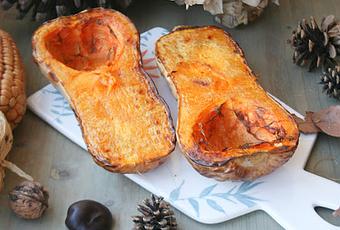 - Coloca las mitades de la calabaza con la carne hacia abajo y programa 20 minutos a 200º.
