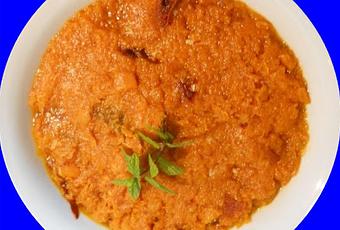 Se pone en la cazuela un poco de aceite donde se fríe el pimiento seco y el ajo, con cuidado que no se queme y se apartan en el mortero.