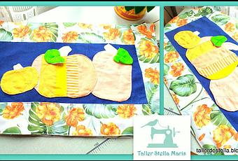 Con pespuntes a máquina y un simple quilteado, he realizado dos Centros de Mesa iguales, casi un trabajo en serie.